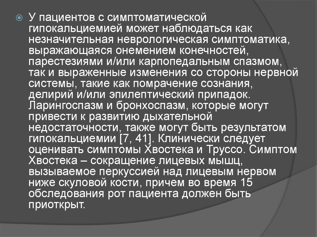 У пациентов с симптоматическойгипокальциемией может наблюдаться как