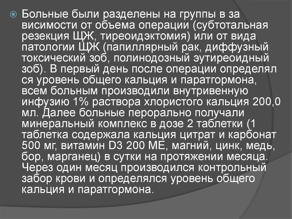 1. Профилактика и лечение послеоперационного гипопаратиреоза