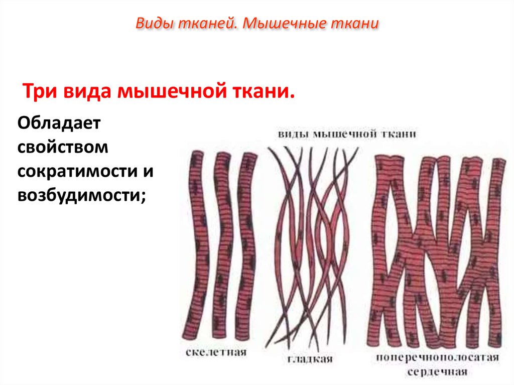 Виды тканей. Мышечные тканиТри вида мышечной ткани.