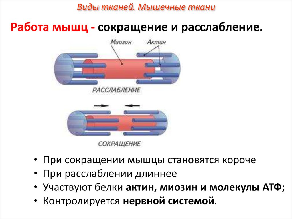 Виды тканей. Мышечные тканиРабота мышц - сокращение и расслабление.