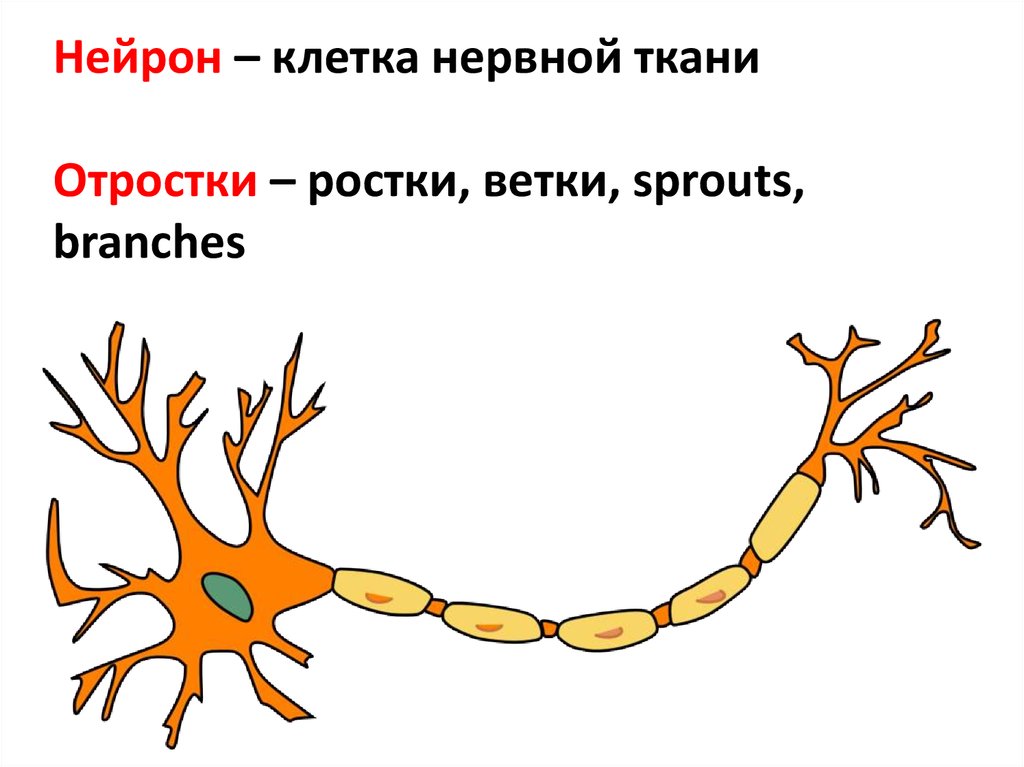 Нейрон – клетка нервной тканиОтростки – ростки, ветки, sprouts,