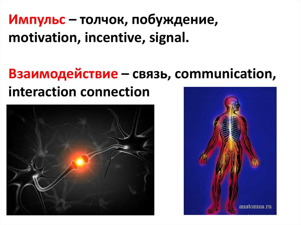 Импульс – толчок, побуждение,motivation, incentive, signal.