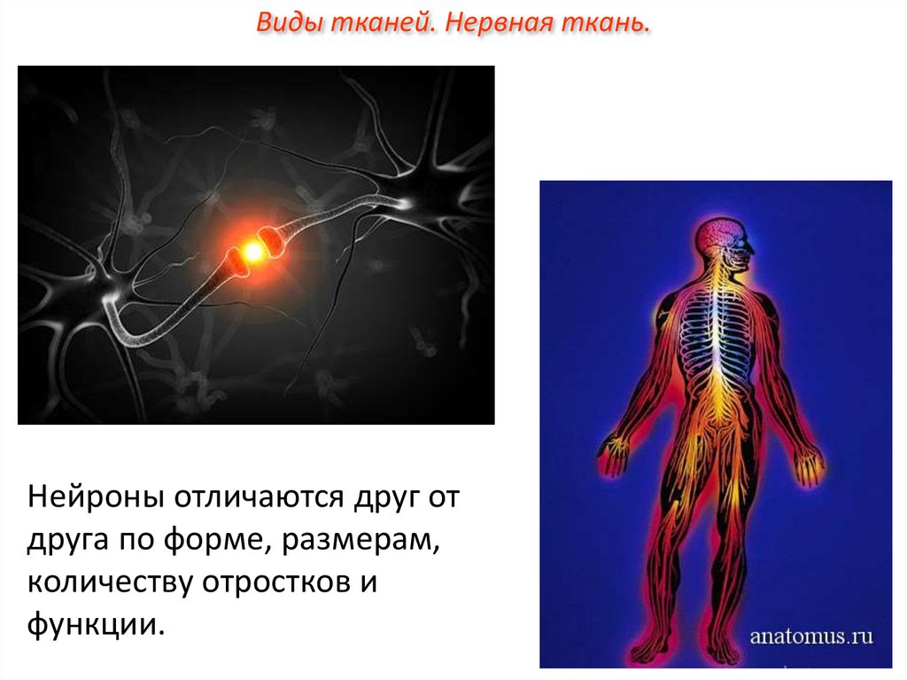 Виды тканей. Нервная ткань.Нейроны отличаются друг от