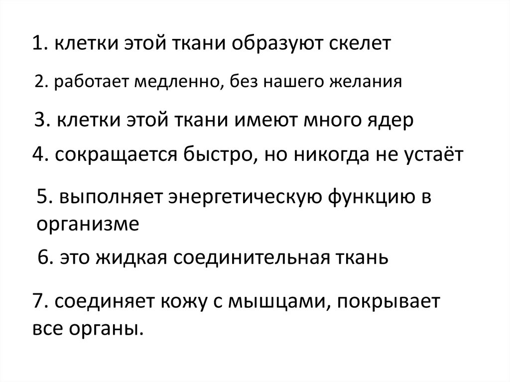 1. клетки этой ткани образуют скелет2. работает медленно, без нашего желания