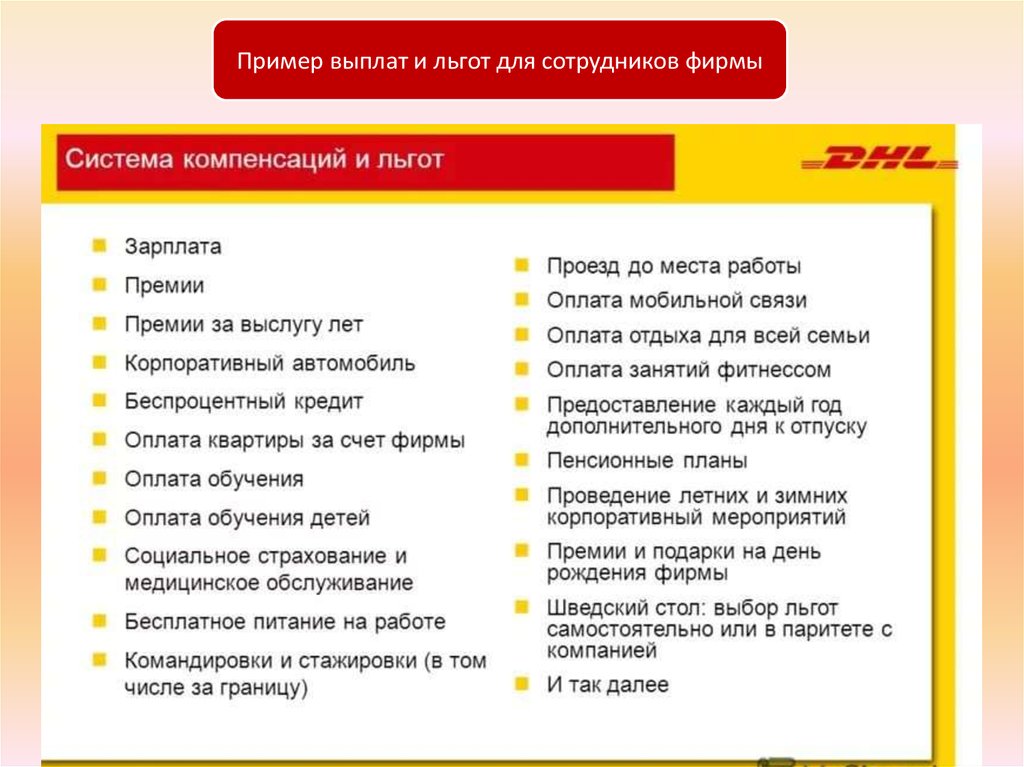 Пример выплат и льгот для сотрудников фирмы11.
