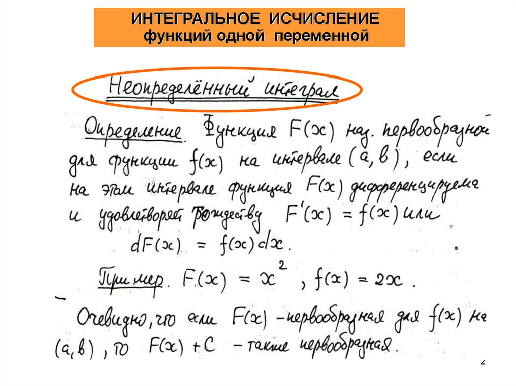ИНТЕГРАЛЬНОЕ ИСЧИСЛЕНИЕфункций одной переменной