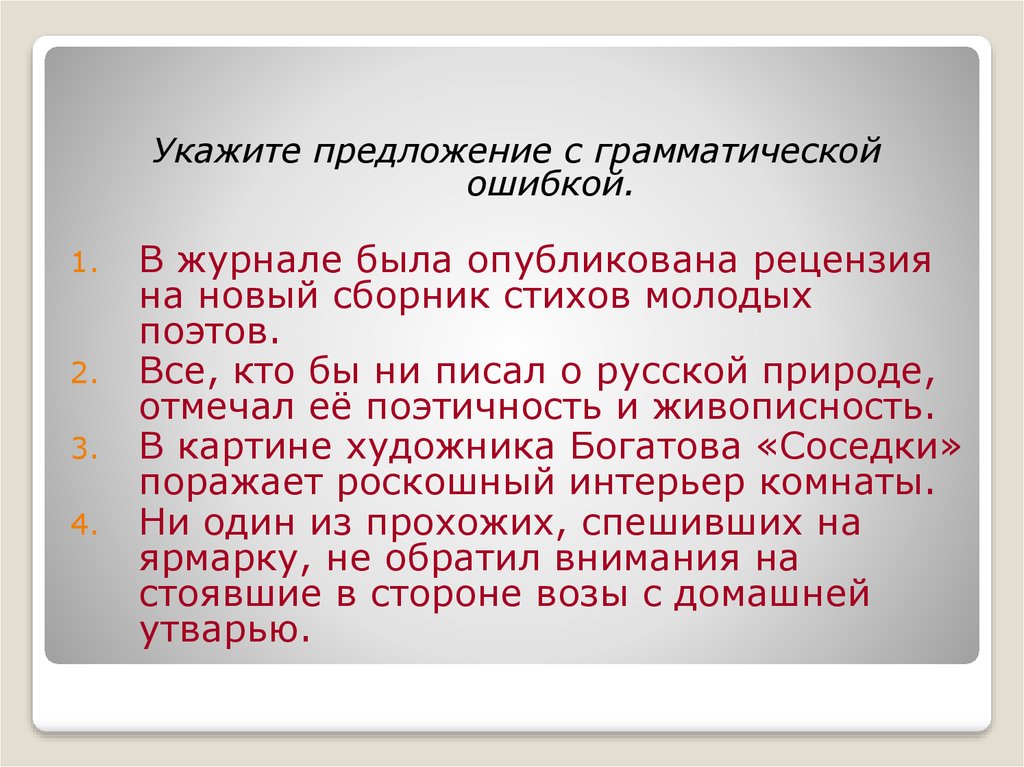 Укажите предложение с грамматическойошибкой.