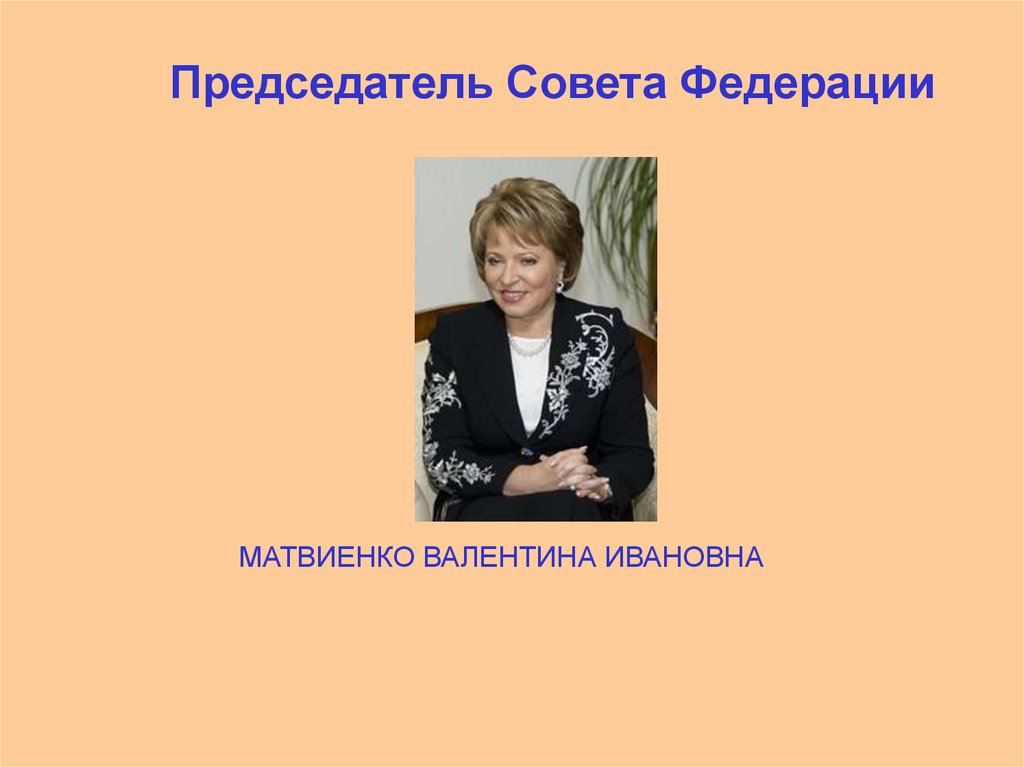 Председатель Совета ФедерацииМАТВИЕНКО ВАЛЕНТИНА ИВАНОВНА