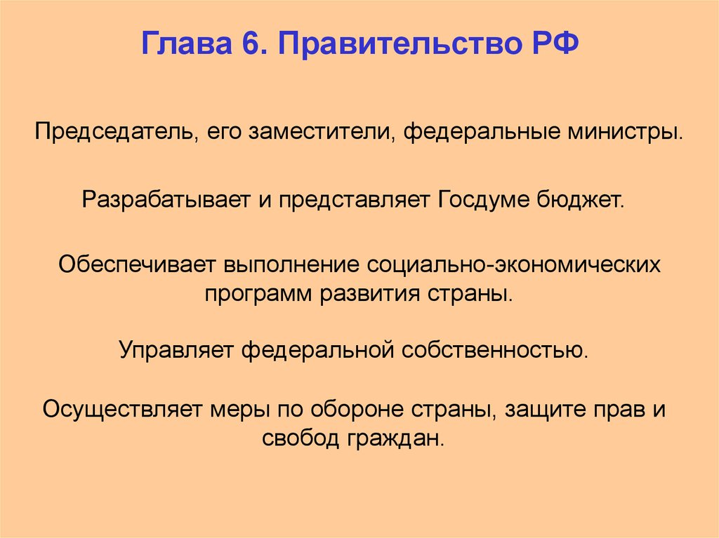 Глава 6. Правительство РФПредседатель, его заместители, федеральные министры.