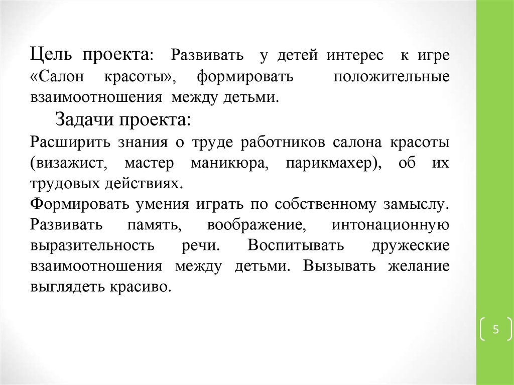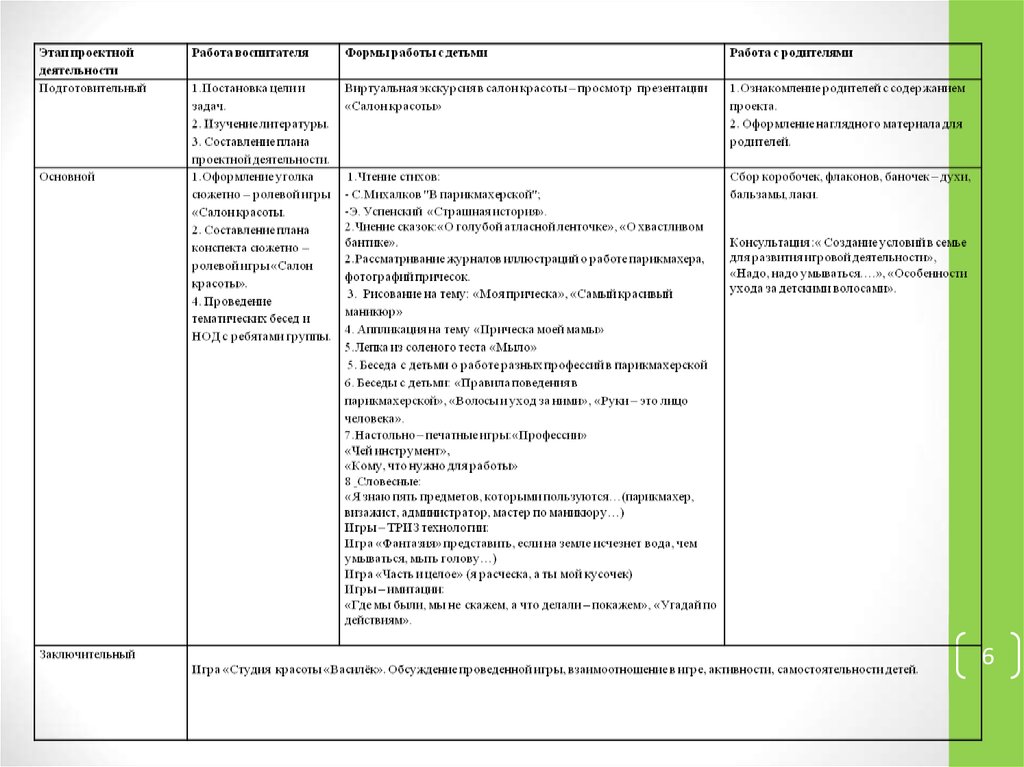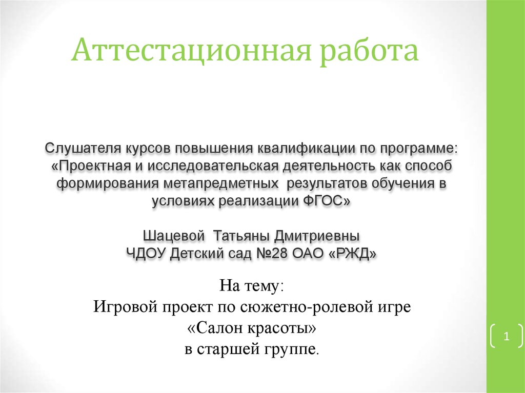Аттестационная работа. Игровой проект по сюжетно-ролевой игре «Салон красоты» в старшей группе