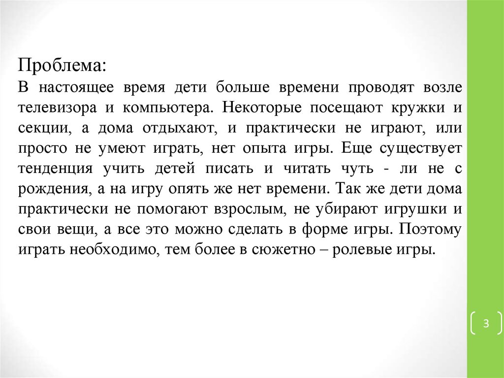 Актуальность проекта:В игре ребенок отражает многообразные явления окружающей