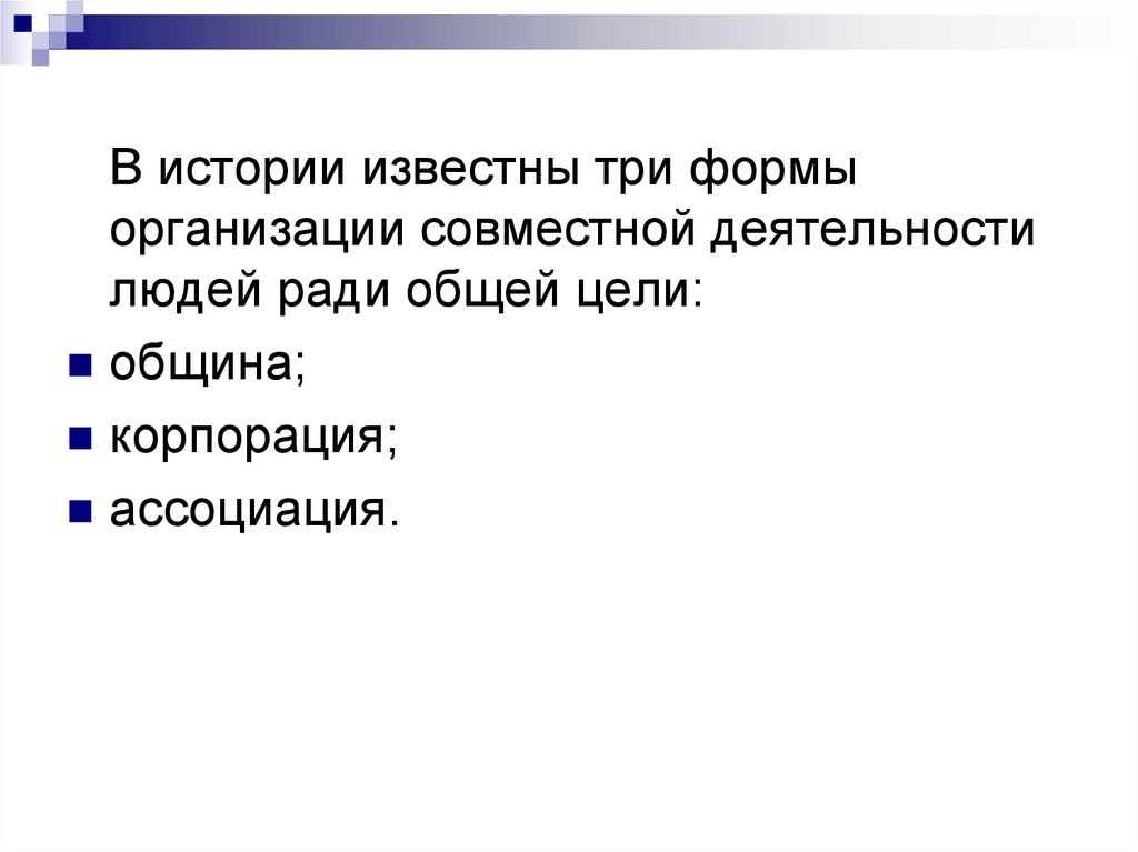 Община — это форма организации, при которой некотороеограниченное число индивидов объединяется, чтобы достичь единой