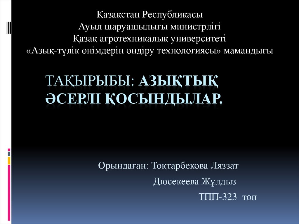 1. Тақырыбы: Азықтық әсерлі қосындылар.