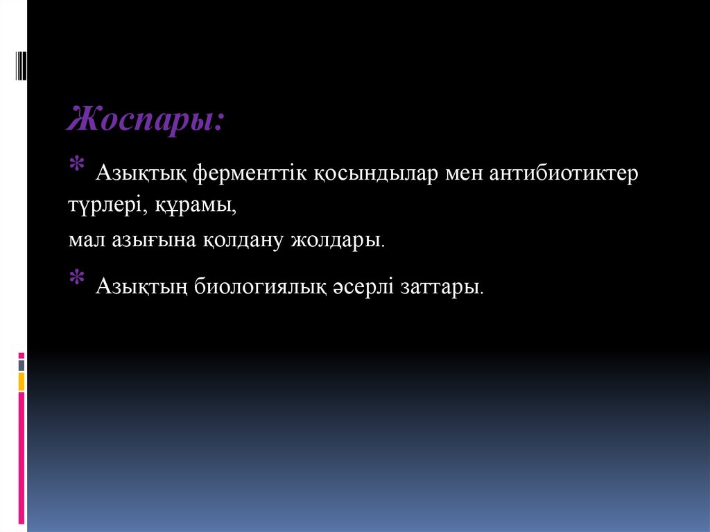 Жоспары:* Азықтық ферменттік қосындылар мен антибиотиктер
