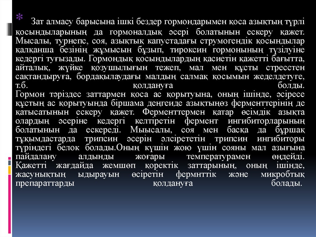кедергі туғызады. Гормондық қосындылардың қасиетін қажетті бағытта,