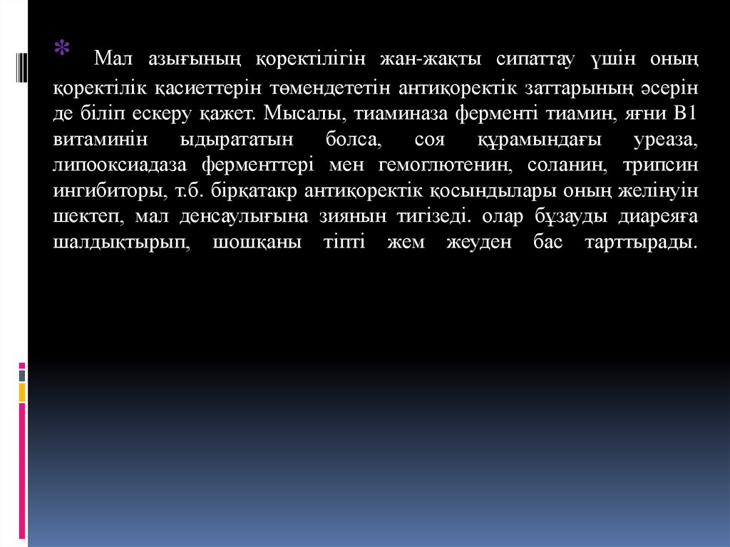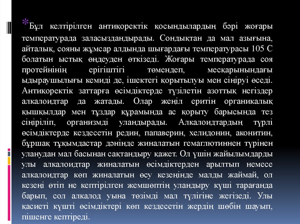 қоректілік қасиеттерін төмендететін антиқоректік заттарының әсерін