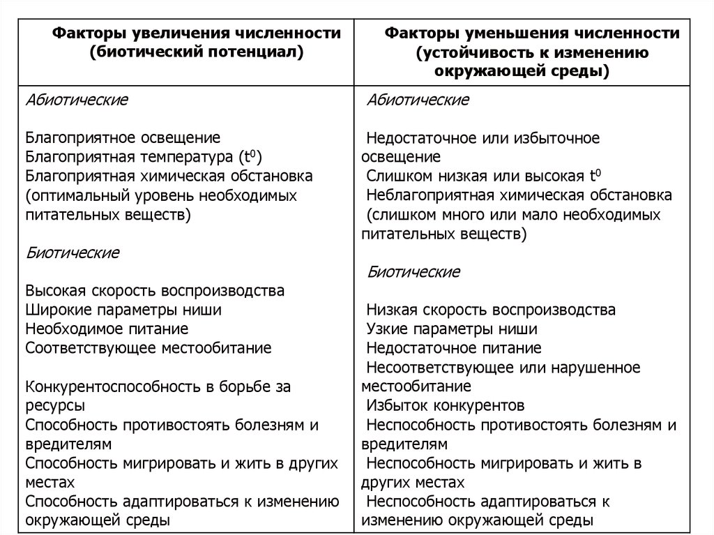 Факторы увеличения численности(биотический потенциал)