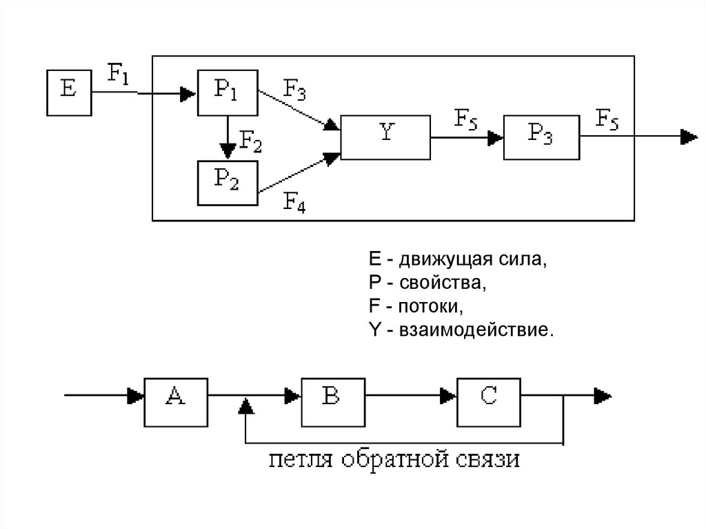 Е - движущая сила,Р - свойства,