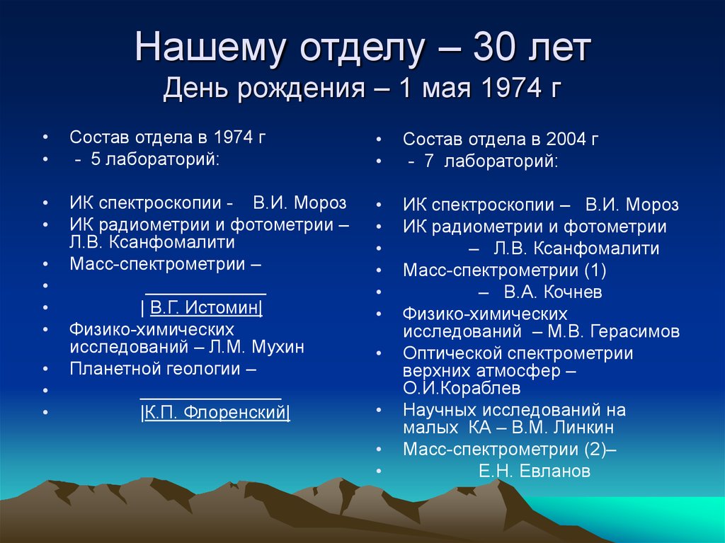 Нашему отделу – 30 лет. Планетные миссии с участием нашего отдела