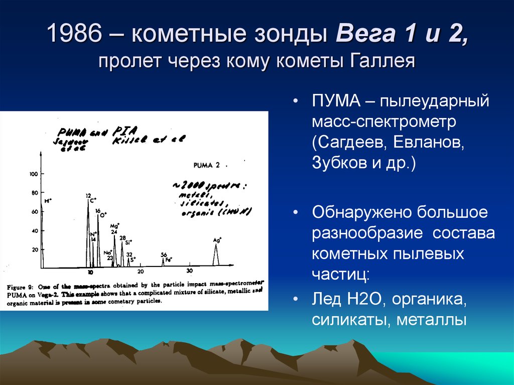 концентрации аэрозольных частиц17. 1985-1986: КА Вега 1 и 2. Миссия состояла из 3 частей: ПА, АЗ, кометный зонд. Широкое привлечение международной кооперации.