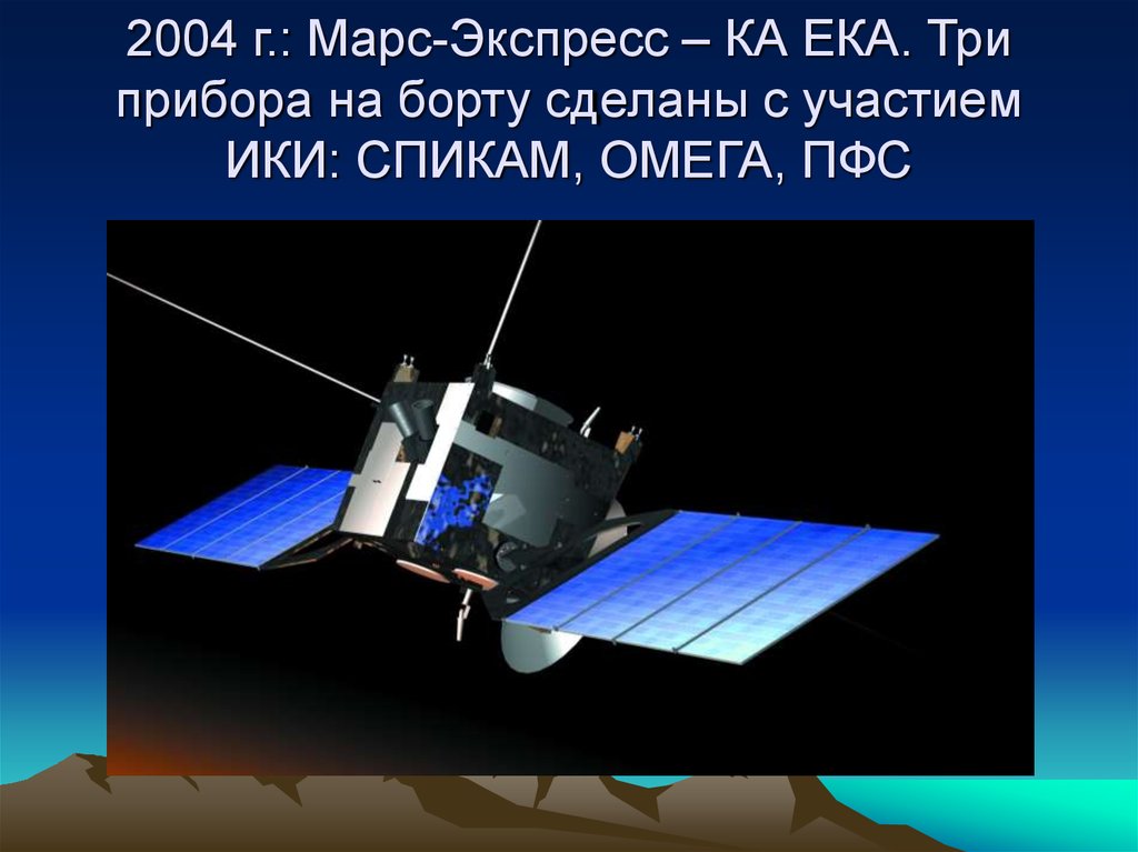 28. 2004 г.: Марс-Экспресс – КА ЕКА. Три прибора на борту сделаны с участием ИКИ: СПИКАМ, ОМЕГА, ПФС