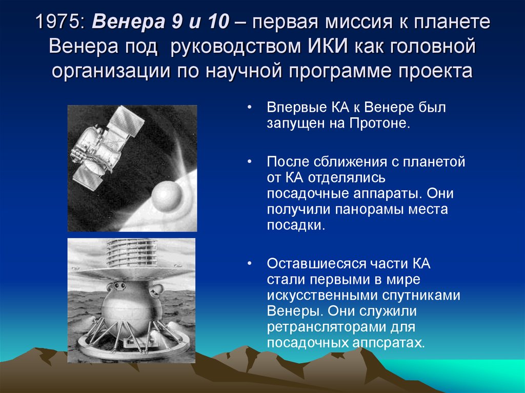 5. 1975: Венера 9 и 10 – первая миссия к планете Венера под руководством ИКИ как головной организации по научной программе проекта