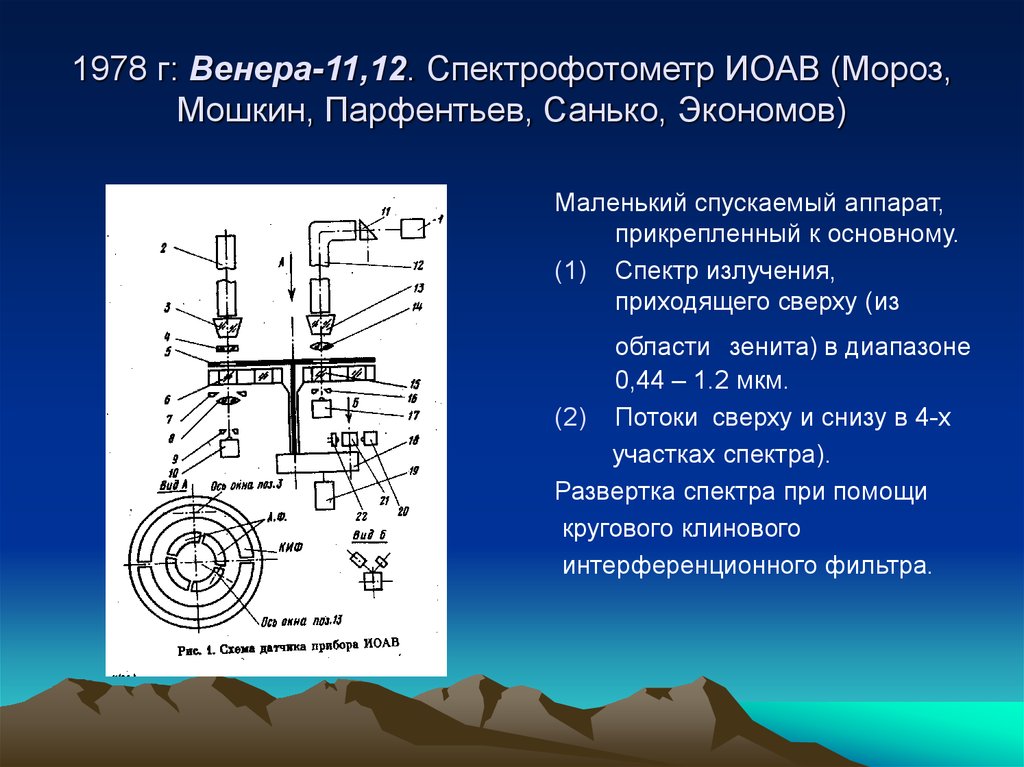 9. 1978 г: Венера-11,12. Спектрофотометр ИОАВ (Мороз, Мошкин, Парфентьев, Санько, Экономов)