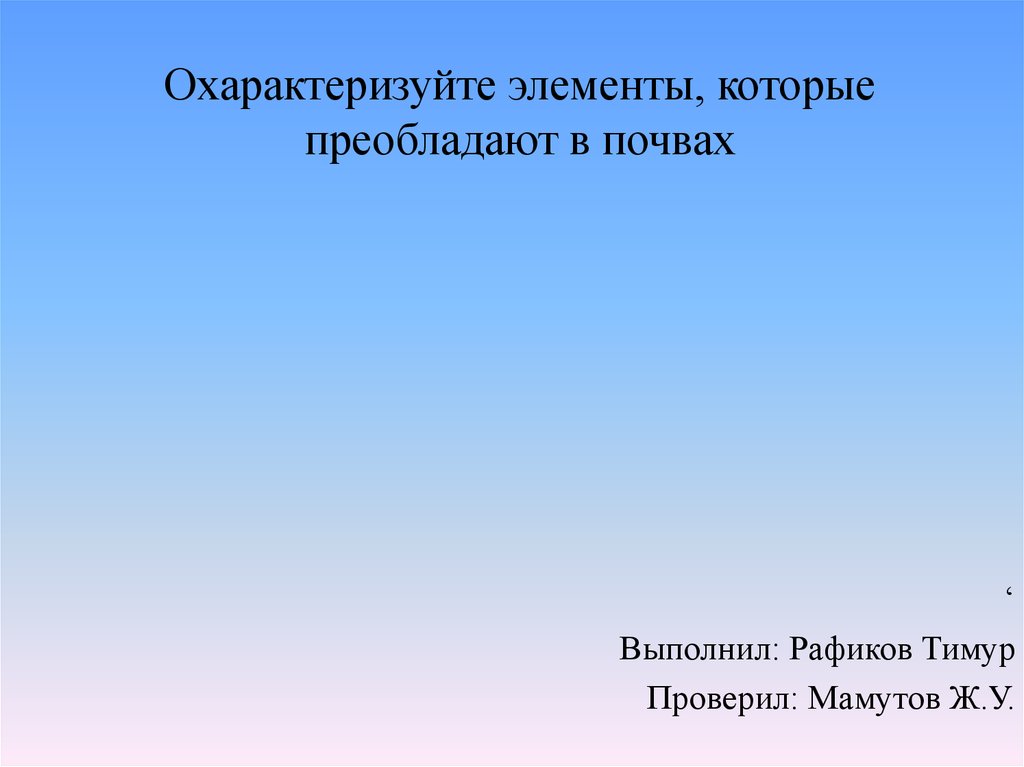 1. Охарактеризуйте элементы, которые преобладают в почвах