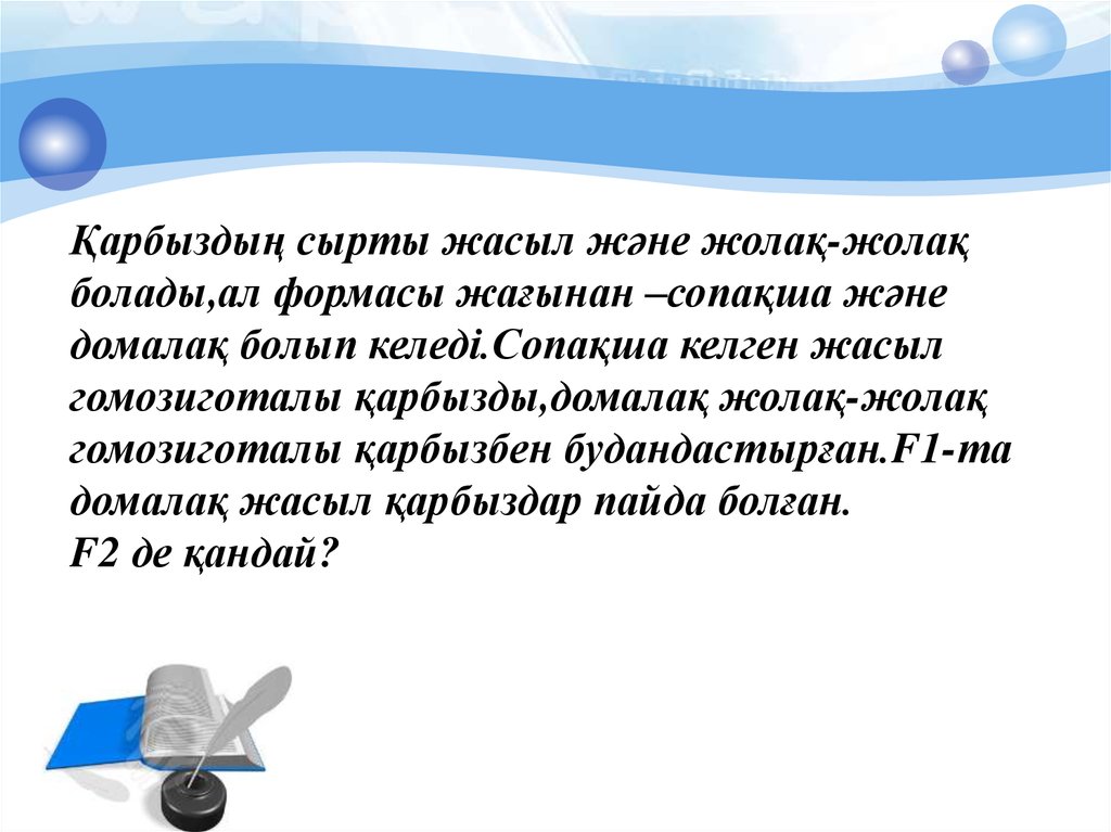 Қарбыздың сырты жасыл және жолақ-жолақболады,ал формасы жағынан –сопақша және
