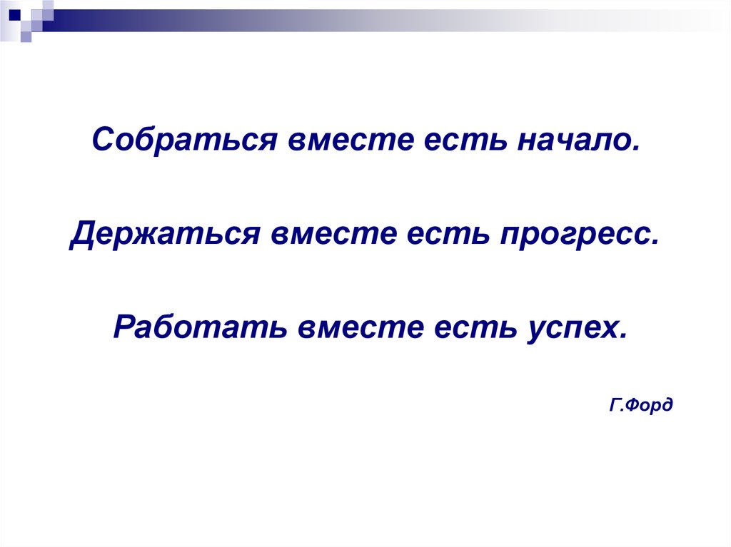 Собраться вместе есть начало.Держаться вместе есть прогресс.