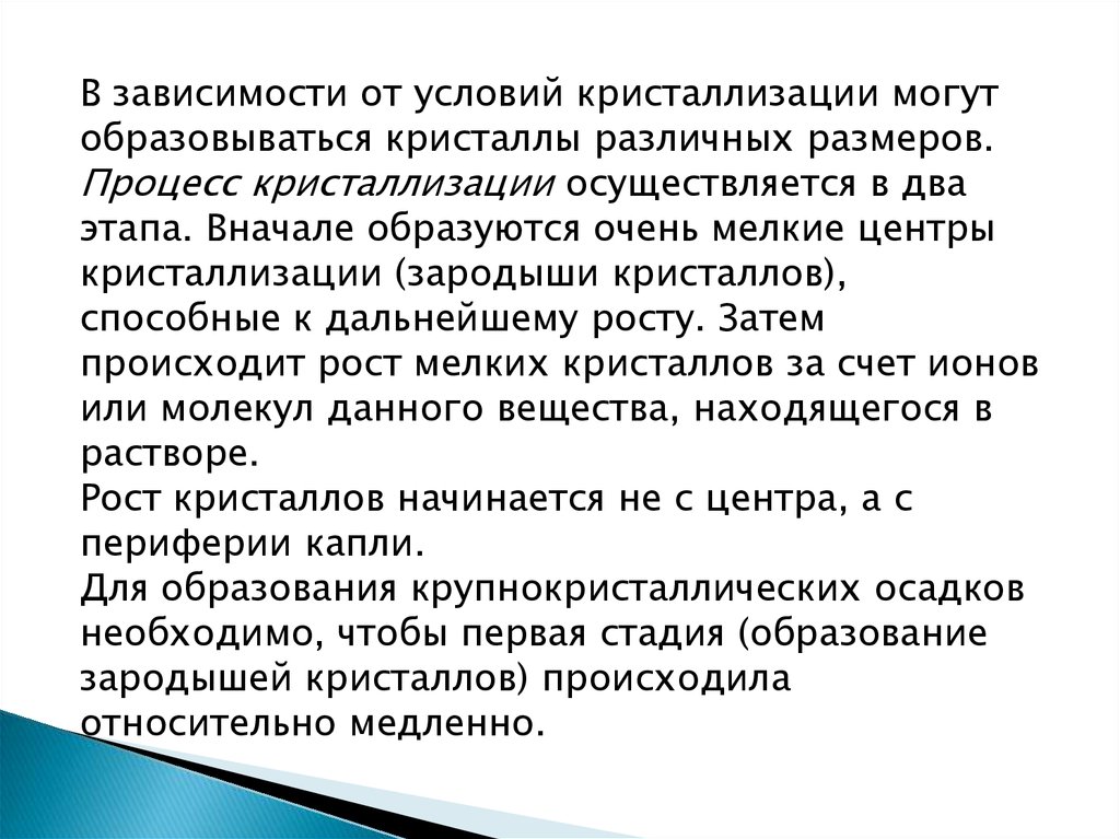 Для образования крупнокристаллических осадков