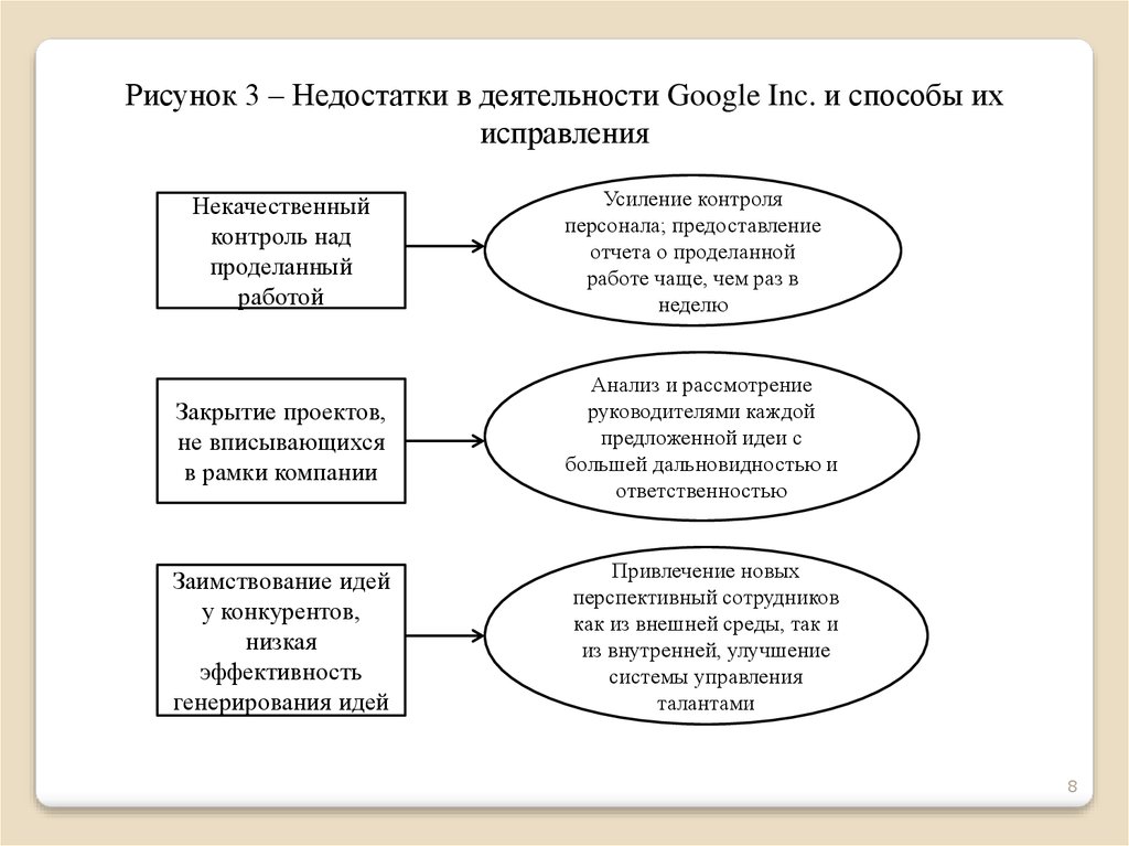 Рисунок 3 – Недостатки в деятельности Google Inc. и способы ихисправления