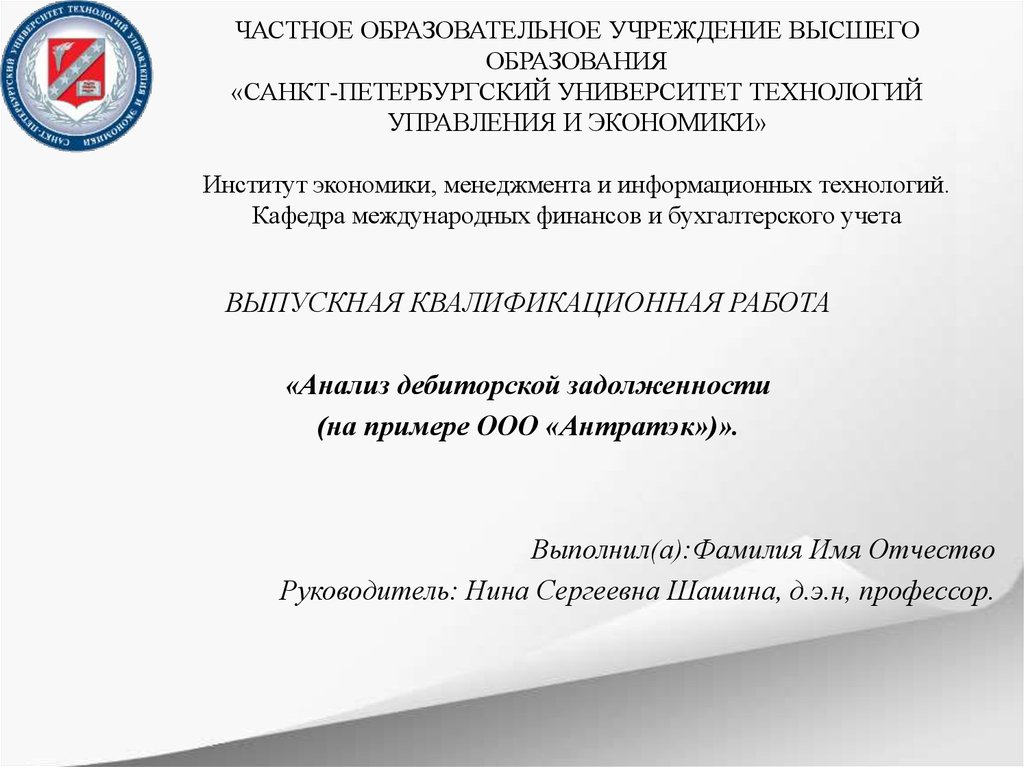 1. ЧАСТНОЕ ОБРАЗОВАТЕЛЬНОЕ УЧРЕЖДЕНИЕ ВЫСШЕГО ОБРАЗОВАНИЯ «САНКТ-ПЕТЕРБУРГСКИЙ УНИВЕРСИТЕТ ТЕХНОЛОГИЙ УПРАВЛЕНИЯ И ЭКОНОМИКИ»