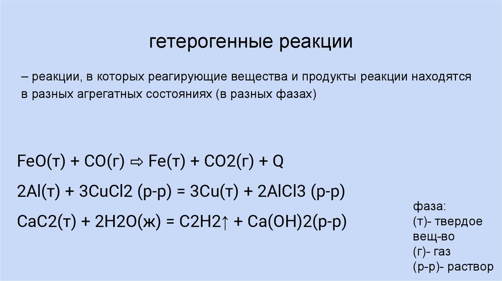 Химические реакции. по фазовому составу
