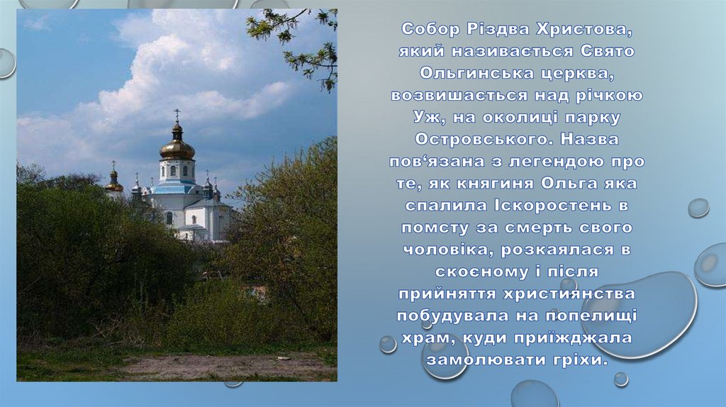 Ольжині купальні - розташовані в центрі міста Коростеня та міському парку культури і відпочинку ім. Островського поблизу
