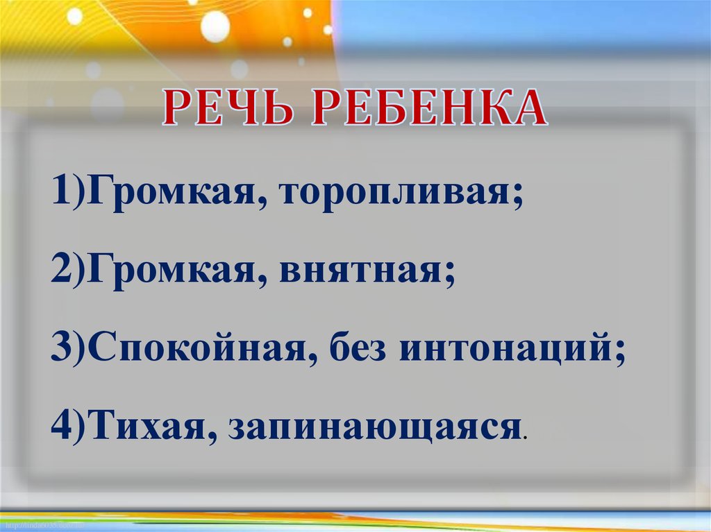 2)Громкая, внятная;