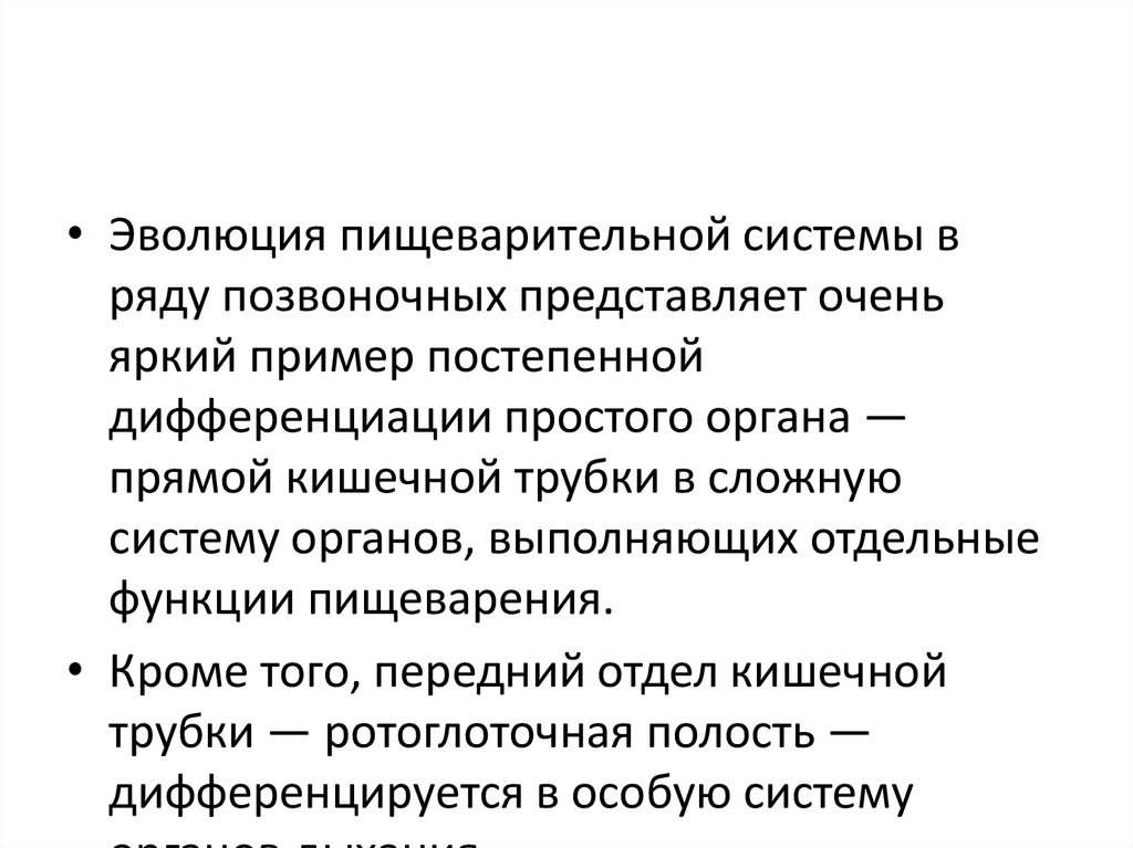 • Эволюция пищеварительной системы вряду позвоночных представляет очень