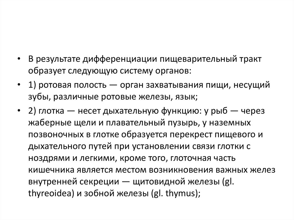 • В результате дифференциации пищеварительный трактобразует следующую систему органов: