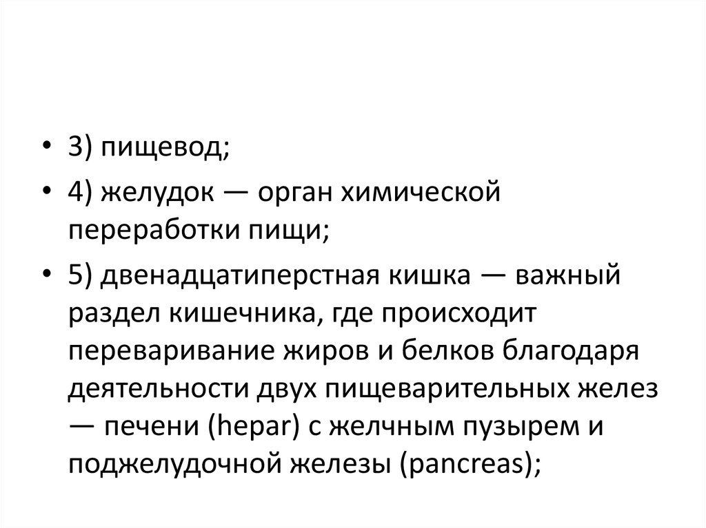 • 3) пищевод;• 4) желудок — орган химической