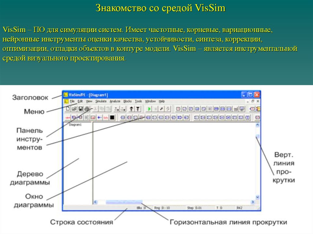 Знакомство со средой VisSimVisSim – ПО для симуляции систем. Имеет частотные, корневые, вариационные,