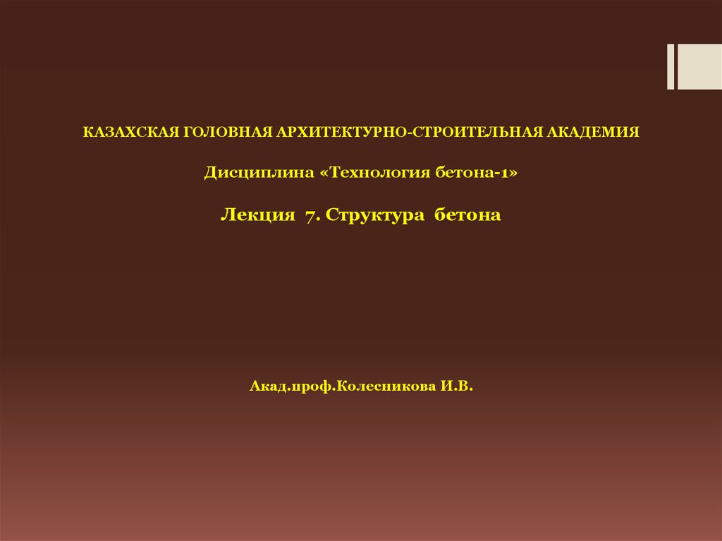 КАЗАХСКАЯ ГОЛОВНАЯ АРХИТЕКТУРНО-СТРОИТЕЛЬНАЯ АКАДЕМИЯДисциплина «Технология бетона-1»