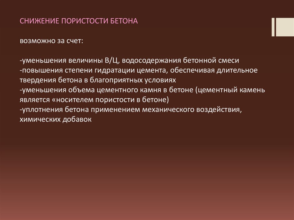 СНИЖЕНИЕ ПОРИСТОСТИ БЕТОНАвозможно за счет: