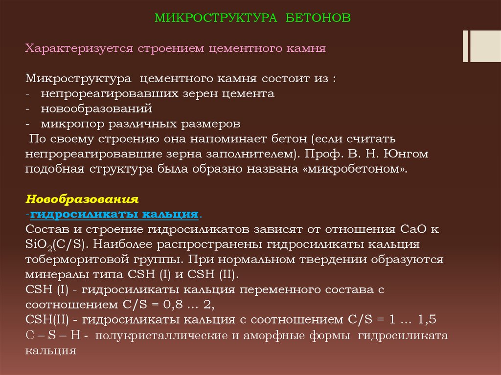 МИКРОСТРУКТУРА БЕТОНОВХарактеризуется строением цементного камня