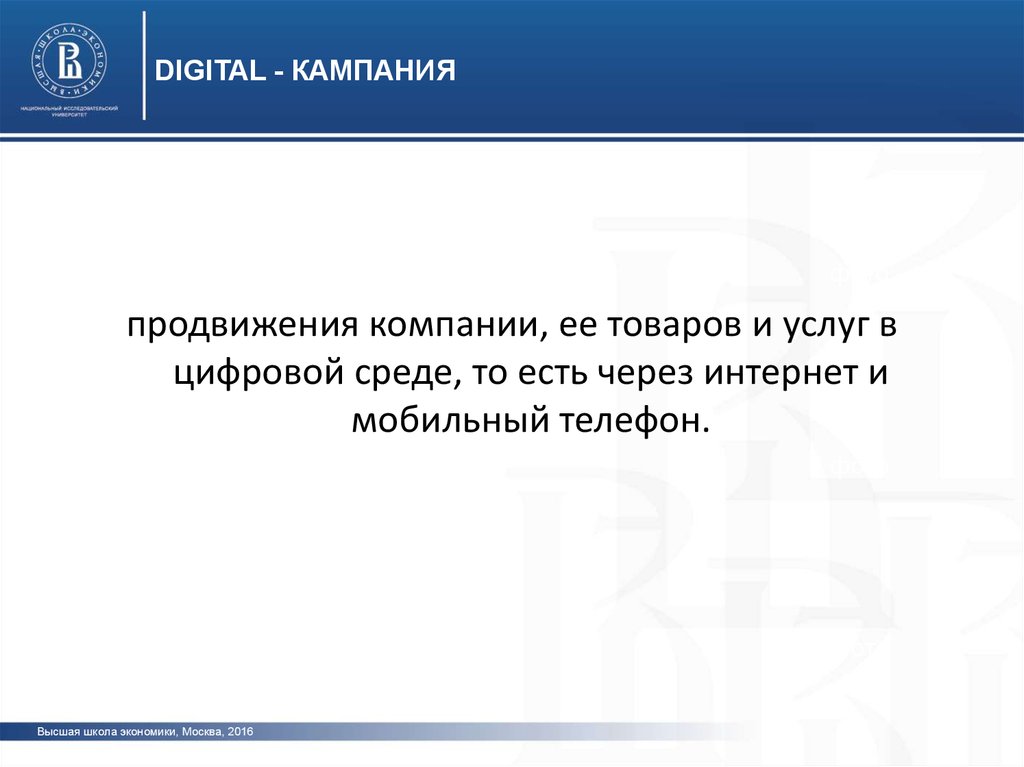 комплекс взаимосвязанных рекламных мероприятий, направленный на продвижение продукта