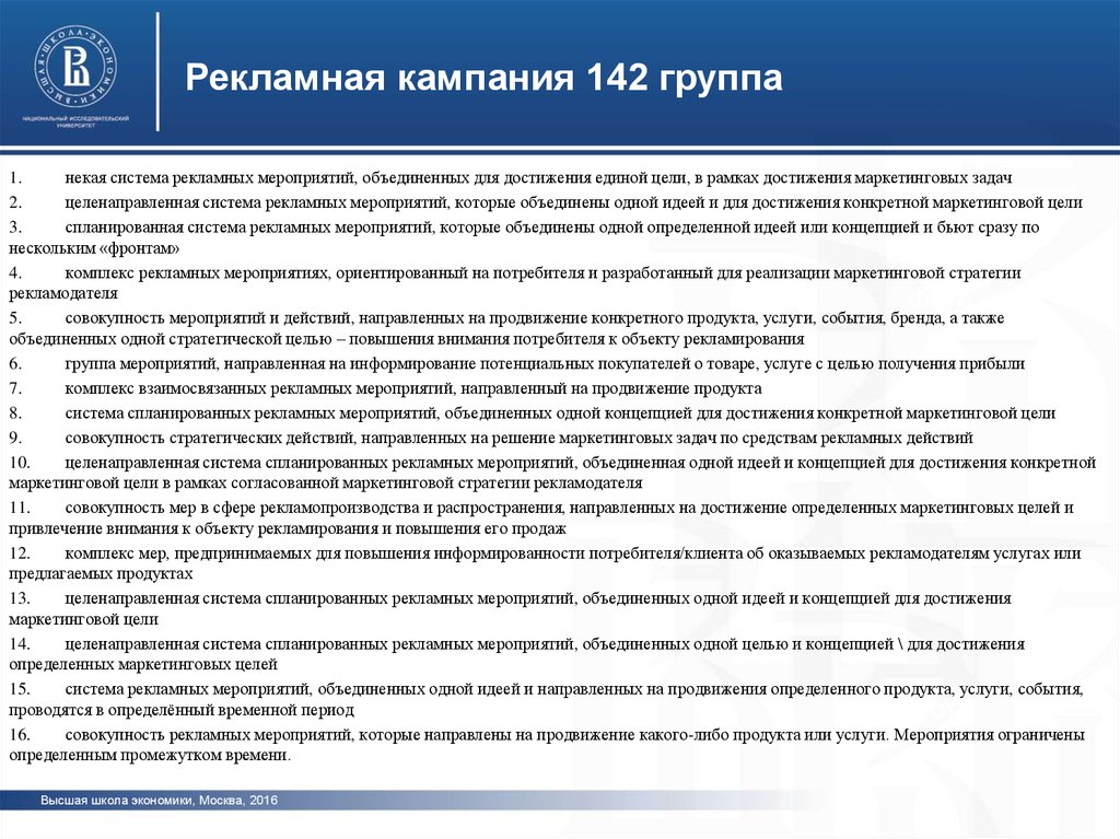 Рекламная кампания 143 группа1. Целенаправленная система спланированных рекламных мероприятий, объединенных одной идеей и концепцией для достижения конкретной маркетинговой