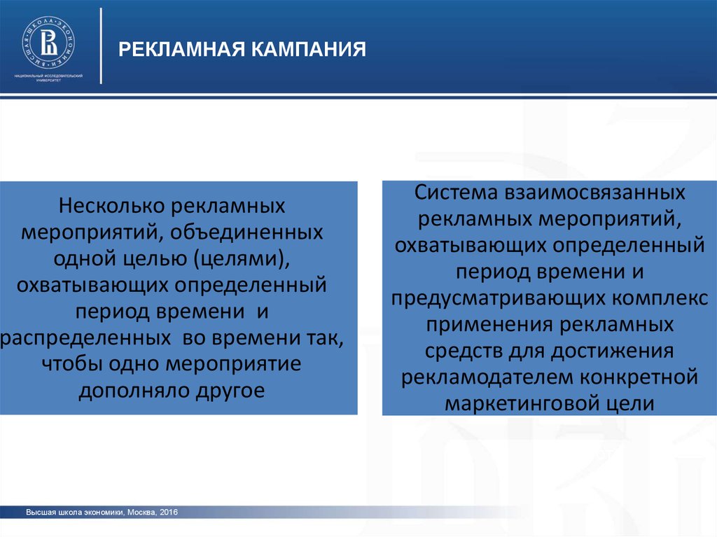 совокупность рекламных мероприятий, направленных на продвижения рекламного продукта в определенный промежуток времени ради