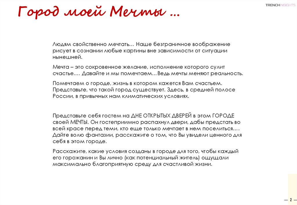 Домашнее заданиеДЛЯ УЧАСТИЯ В ИНТЕРВЬЮ ПО ТЕМЕ “ГОРОД МОЕЙ МЕЧТЫ”