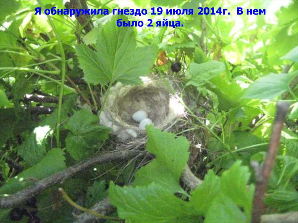 Я обнаружила гнездо 19 июля 2014г. В нембыло 2 яйца.