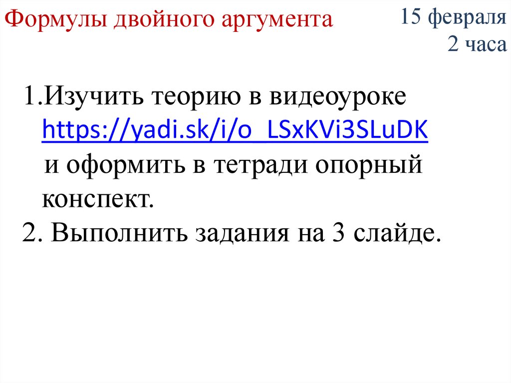 Формулы двойного аргумента15 февраля