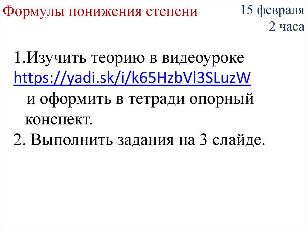 Формулы понижения степени15 февраля
